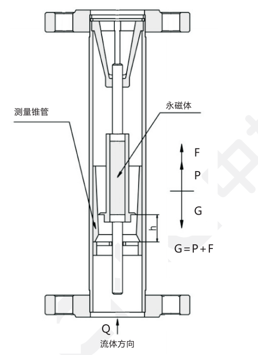 浮子在測量管中,隨著流量的變化,將浮子向上移動,早某一位置浮子所受的浮力與浮力重力達到平衡。此時浮子與孔板(或椎管)間的流通環隙面積保持一定。環隙面積與浮子的上升高度成正比,即浮子在測量管中上升的位置代表流量的大小,變化浮子的位置由浮子內部永磁體傳輸到外部的指示器,使指示器正確地指示此時的流量值,同時通過調制電路,將信號轉換成標準4~20mA電流信號或者數字信號輸出。