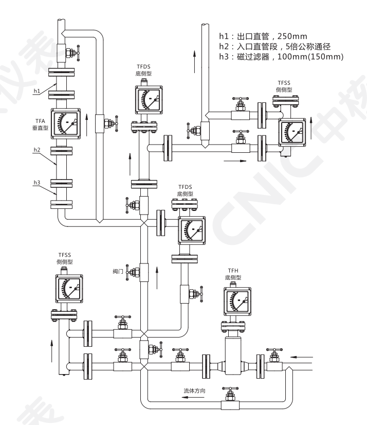 2. 如果介質中含有鐵磁性顆粒,應在流量計入口前安裝磁過濾器。