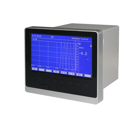 7英寸800*480點陣寬屏TFT高亮度彩色圖形液晶顯示,LED背光、畫面清晰、寬視角。 顯示內容可由漢字,數字,過程曲線,棒圖等組成,通過面板按鍵可完成畫面翻頁,歷史數據前后搜索,曲線時標變更等 |