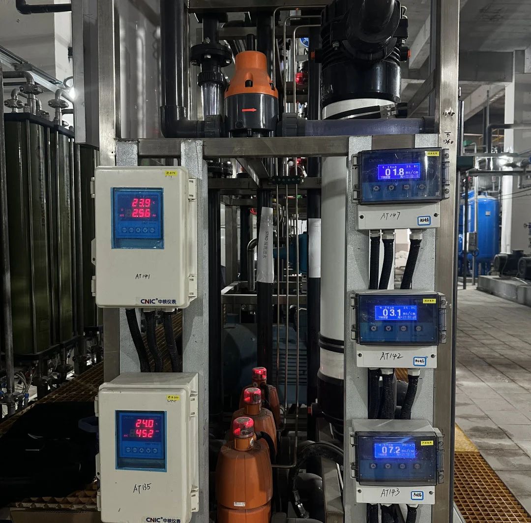 中核儀表為該企業生產過程提供多臺酸堿濃度計、電導率儀等儀器儀表配套設備,現場有硫酸/鹽酸/氫氧化鈉/原水稀釋濃度監測、有機物介質監測等工藝工況,嚴密監測生產過程中的各類指標,高效完成生產需求。