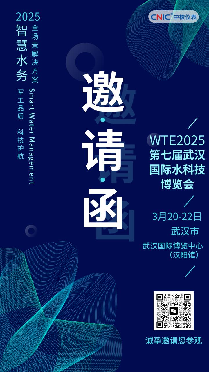 水韻千年,科技賦能!第七屆武漢國際水科技博覽會(Wuhan International Water Technology Expo)即將于3月20-22日在武漢國際博覽中心盛大啟幕!中核儀表誠邀您蒞臨B3館-B70展位,共同探討智慧水務前沿解決方案。